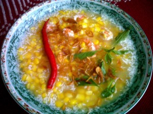 In Gorontalo, waxy corn is mostly boiled or roasted as corn on the cob or made into binte biluhuta, a comfort food to many in the area. Binte biluhuta, traditional corn soup, is a healthy food cooked with fresh ingredients without oil.
