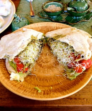 Located in the heart of Seminyak this restaurant offers a wide range of vegan delicacies, of which we ordered a raw vegan roll, an avocado, sprouts, and veggie goodness wrap, and a vegan nasi campur – with Seitan as the meat alternative.