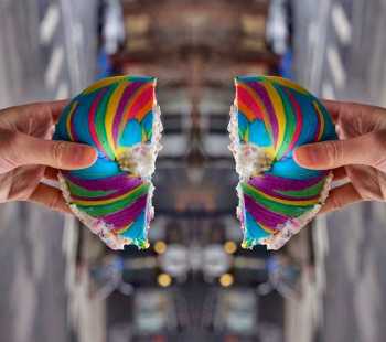 “If you come here for the rainbow bagels, we don’t have them,” says the guy behind the counter to some...