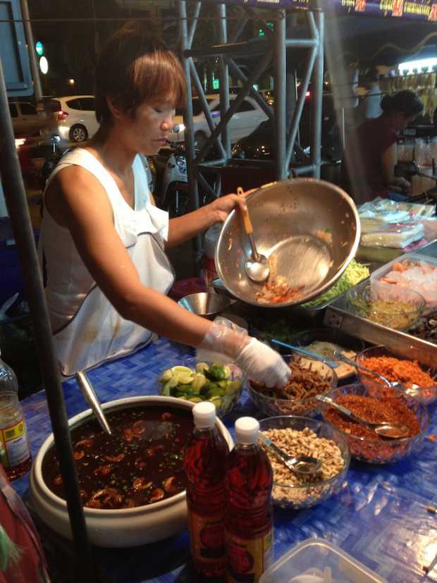 Cooked in massive woks with liters of oil, for 10 baht, you will get 6 sweet potato balls. Unique in taste and texture, this is definitely worth a try.