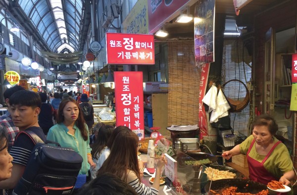 The most popular snack at Tongin Market is gireum tteokbokki (pan fried rice cakes) sold by a vendor who has been there for more than 30 years.