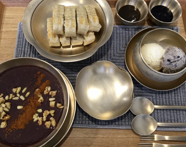 Noshi’s Table has 13 cold and warm desserts on the menu, from which we settled for warm red bean cream with cinnamon, and rice cakes with ice cream. The combination of flavors, textures, temperatures and tastes were unimaginable.