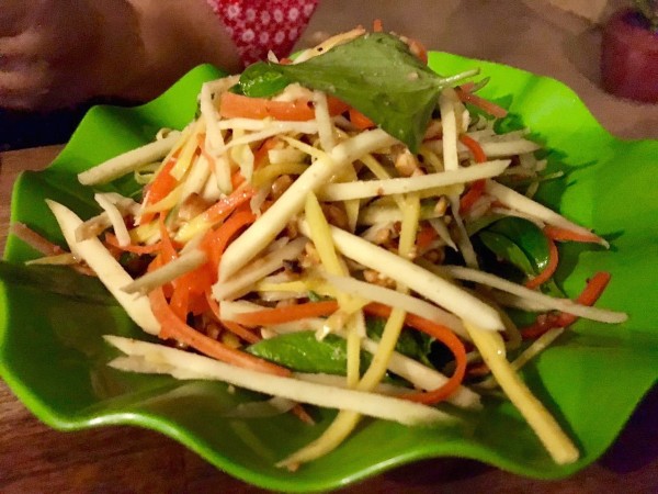 Funded by Hauts-de-Seine, a French organization, the garden is part of the diversification of peri-urban agriculture and malnutrition alleviation in Siem Reap. We had a five-course dinner in the garden setting that began with fresh vegetable wrap made from rice paper wrap with avocado, bean sprout, carrot, scallion, herbs, cucumber, potato with soybean dressing and ended with palm fruit dessert with coconut sorbet. My favorite was the warm house salad with vermicelli noodle and vegetable curry that consists of homemade curry paste, coconut cream and vegetables.