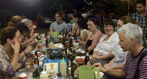 As there are pescatarians and a vegan in our group, Steven carefully introduced what ingredients are in each dish of our dinner. Most memorable are boiled vegetables with eggplant dip, mango salad, and mushroom and tofu curry. Steven who worked at a Michelin starred restaurant in Scotland before moving to Cambodia and Lina, the author of Move to Cambodia: A guide to living and working in the Kingdom of Wonder, guided us to local farms and markets showing their expertise and love of Cambodian food.