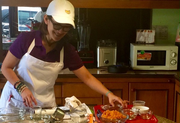 There were 14 of us who attentively watched her demonstrating how to make chickpea flour chocolate chip cookies, pineapple carrot vegan muffins, and curried cashews pepita crunch.