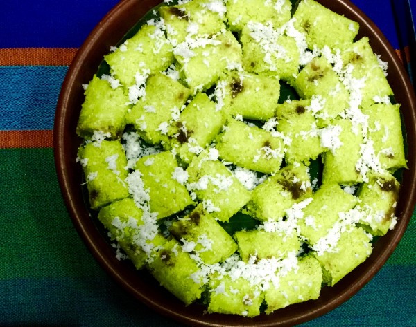 Putu ayu pandan suji (traditional cake made from rice flour, palm sugar and pandan suji leaf)