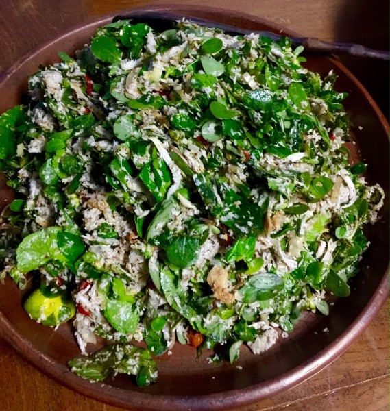 Sayur Urap jantung pisang, kelor dan pegagan (banana blossom with grated coconut, moringa and centella/penywort)