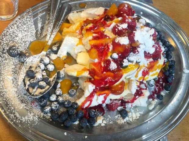 Basically, Ploughman’s Lunch is a midday meal that consists of bread and cheese with pickles. Lunch on the last day of OSFC 2017, however, had many more treats. Drinks were cider and apple juice while breads, butter and tomatoes came with Stichelton, Montgommery cheddar and Yorkshire pickle. The finale was a colorful and tasteful Eton Mess as the finale.