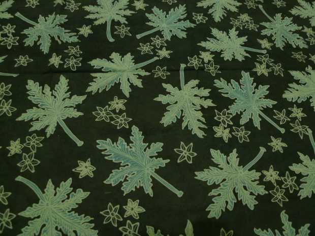 Batik is dyed by proud craftspeople who draw designs on fabric using dots and lines of hot wax, which resists vegetable and other dyes and therefore allows the artisan to color selectively by soaking the cloth in one color, removing the wax with boiling water and repeating if multiple colors are desired.