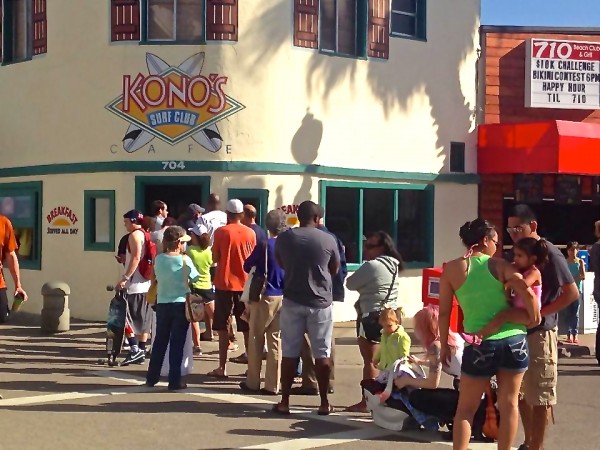 Kono’s Surf Club Café always has a long line for breakfast. Only steps away from the beach, also on Garnet Avenue, Kono’s was selected as one of the Top 12 Power Breakfast Places in San Diego by Eater.