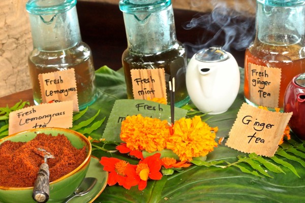 WELCOMING AND DRINKS: Balinese sweets, Jajan; Kintamani Bali coffee; Garden tea; Bambu Indah tap water; Bambu Indah soda water Lemongrass and ginger, and Ice Tea Coconut water.