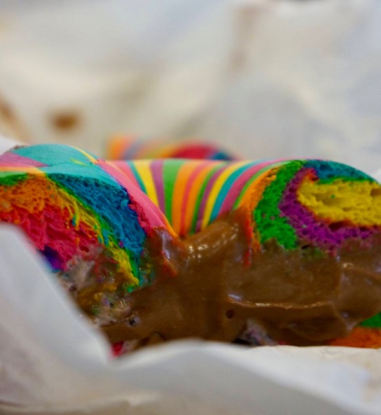 We were so happy that the store honored our order amidst the long line of people hoping for rainbow bagels. Each bagel can be cut in two with two choices of fillings. We ordered three bagels and chose the sweet (oreo, confetti, nutella, and blueberry) and and savory (artichoke, and herb & onion) fillings. These multi colored bagels from The Bagel Store and their fillings are soft, silky and luscious.
