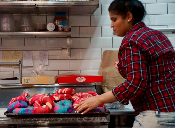 “If you come here for the rainbow bagels, we don’t have them,” says the guy behind the counter to some disappointed visitors. We were at The Bagel Store on Bedford Avenue in New York at 8.00 AM on February 4 ready to pick up our order.