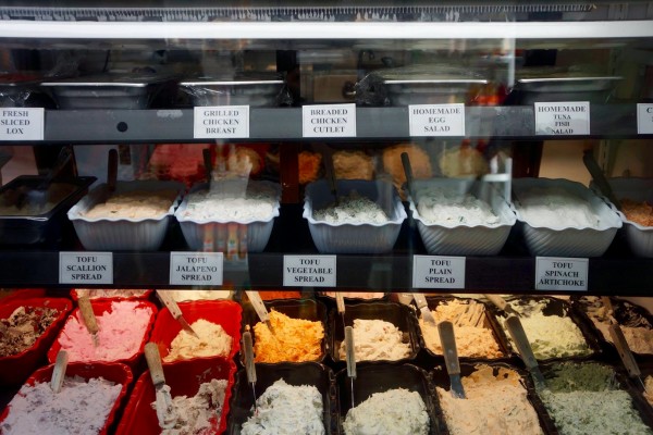 On the wall there is a simple hand writing poster with a list of cream cheese available. Savory (sundried tomato-scallion-bacon, olive pimento, garlic & herb, spinach & artichoke, sundried tomato, scallion, vegetable, lox spread); sweet (walnut raisin, maple bacon, strawberry, blueberry, canoli, nutella, red velvet cake, cake better); spicy (jalapeno, chipotle, buffalo bacon cheddar); and tofu (plain, vegetable, scallion, sundried tomato, spinach artichole, jalapeno).